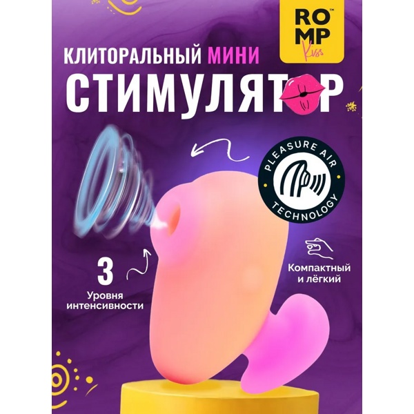 Romp Kiss — компактная игрушка с эргономичным дизайном и 3 уровнями интенсивности вакуумной стимуляции позволит вам получить удовольствие как в одиночку, так и в паре!