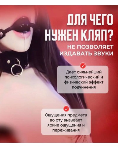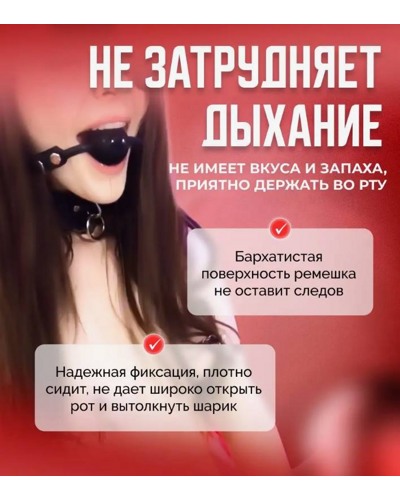 Кляп в виде силиконового шарика на ремне из искусственной кожи.
