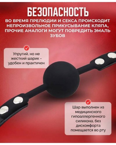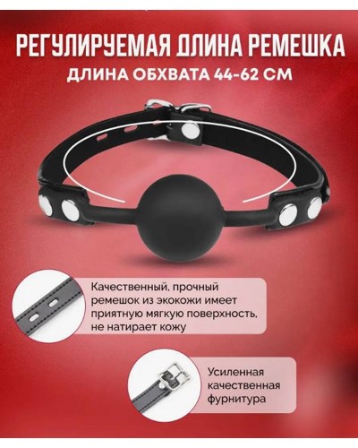Кляп-шар имеет универсальный размер, который удобно регулируется при помощи пряжки, а специальные дырочки в шаре облегчают дыхание и обеспечивают полный комфорт.