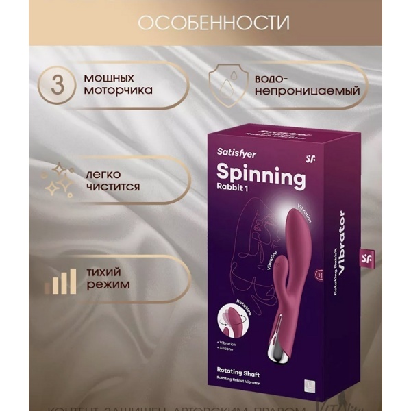 Satisfyer Spinning Rabbit 1 – вибратор-кролик с 3-мя моторами, который идеально сочетает в себе вибрации и ротацию.
