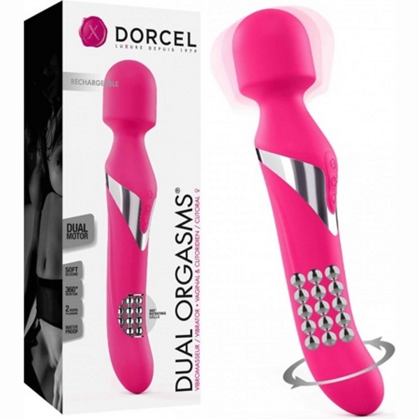 Dorcel Dual Orgasms имеет форму классического универсального массажера, однако это игрушка с сюрпризом. Помимо подвижной и крупной головки для массажа, которая идеально простимулирует не только интимные зоны, но и подарит максимальное расслабление любым участкам тела, Dorcel Dual Orgasms сможет обеспечить и мощную стимуляцию точки G. Ручка устройства сделана со вращающимися шариками внутри, а также распространяющейся и на нее вибрацией. Она изогнута и легко доставит неземное удовольствие во время введения Dorcel Dual Orgasms в тело. Игрушка водонепроницаема, ею можно смело пользоваться в ванной и душе.