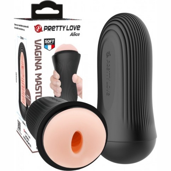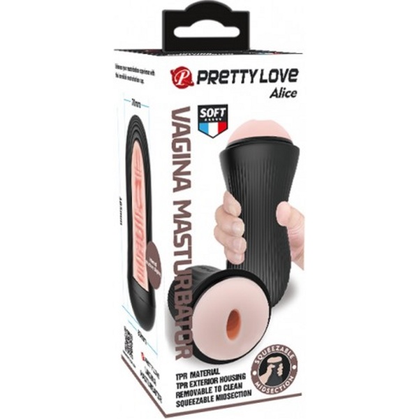Модель Pretty Love Alice отличается тем, что оболочка колбы выполнена из податливого материала, что позволяет сжимать игрушку в руке, усиливая воздействие на пенис при фрикциях.