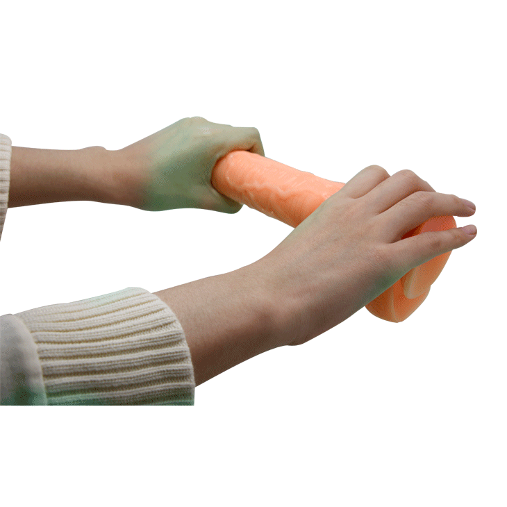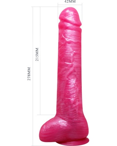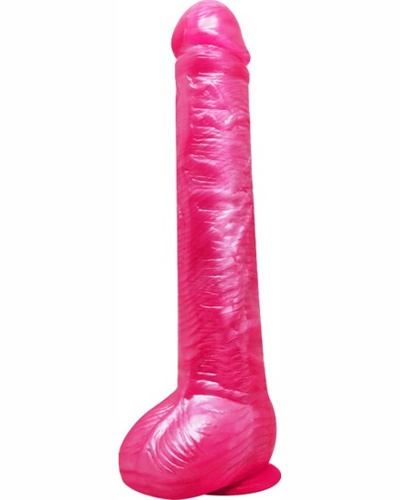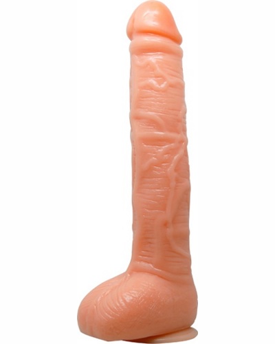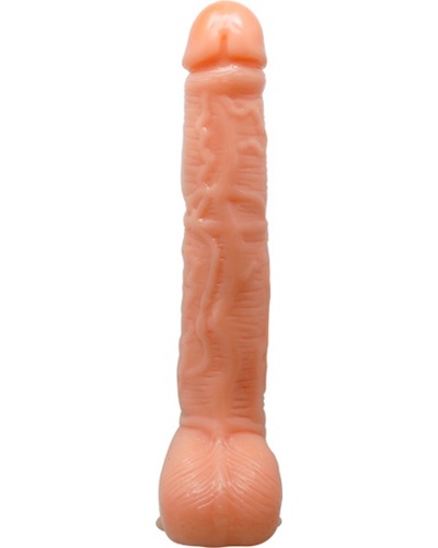 Реалистичный по форме и ощущениям. Крепкий и упругий, достаточно толстый, с мошонкой, раскрытой головкой и рельефом из выступающих вен.