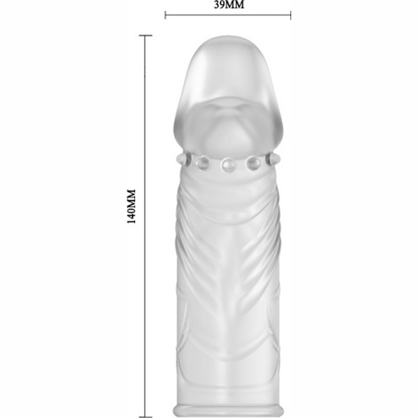 Закрытая насадка из эластичного очень мягкого материала. Насадка в форме члена, это подчеркивает головка и венки на поверхности. Рельеф ствола насадки усилит стимуляцию стенок влагалища.