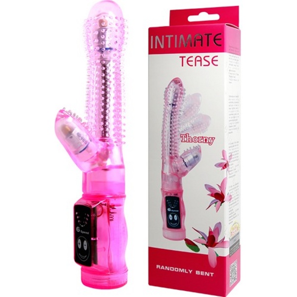Thorny - Гнущийся вибратор с нежными силиконовыми шипами розового цвета с дополнительной стимуляцией для клитора. Вибратор имеет 6 режимов вибрации и два виброэлемента. Благодаря хребту он изумительно гнется и достанет до заветной точки-G.