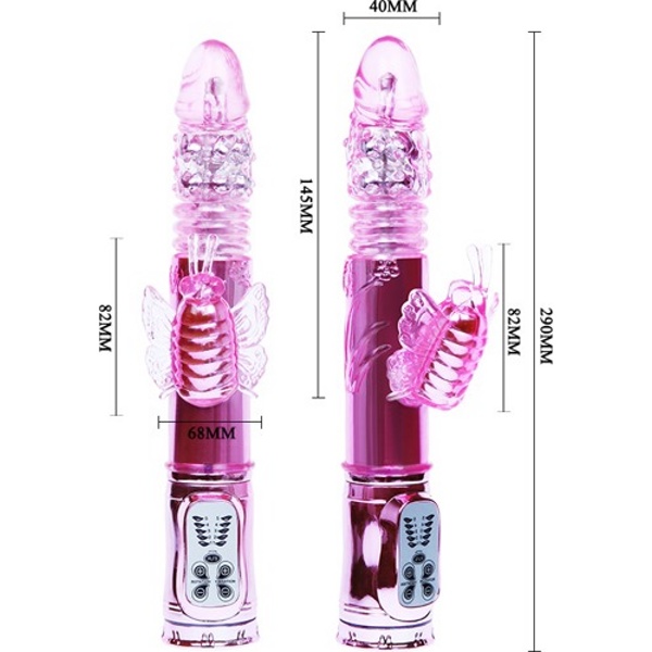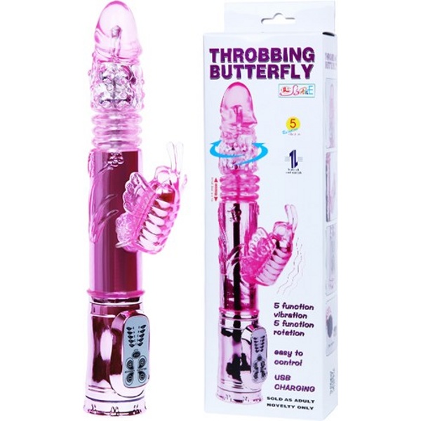 Throbbing Butterfly – многофункциональный вибратор выполненный из гелевого материала. Секс-игрушка обладает пятью функциями вибрации, пятью режимами ротации и функцией Up and Down, при включении которой ствол вибратора двигается вверх-вниз.