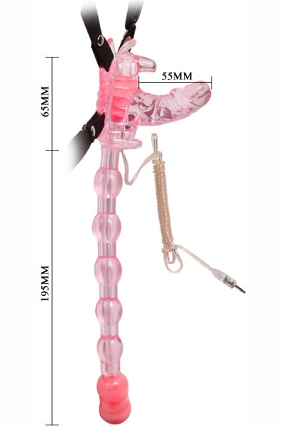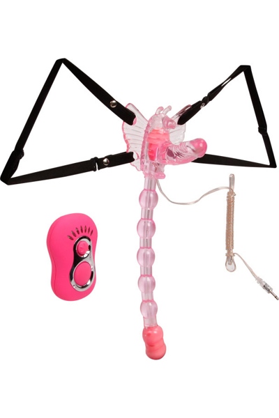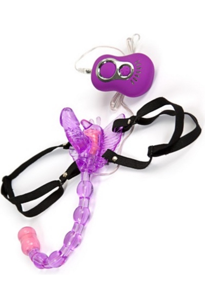 Массажер выполнен в виде бабочки с виброяйцом в теле и хвостом в виде анальных шариков на жесткой сцепке с виброяйцом на кончике, с анатомичной формы фалосом и очерченной головкой ! Непревзойденный массаж эрогенных зон и превосходная тренировка мышц ! Имеет крепления в виде эластичных строп для надежной фиксации на теле.