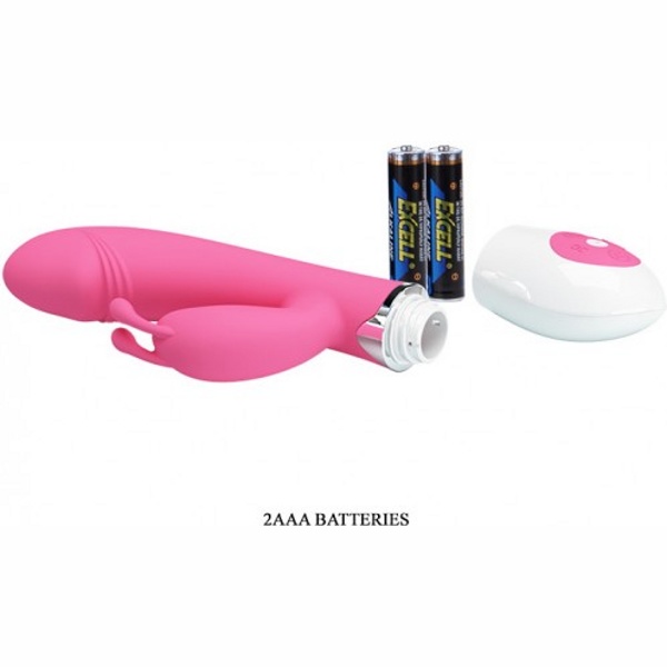 Pretty Love Gene - вибратор с клиторальным отростком в форме кролика, выполнен из мягкого, приятного на ощупь и абсолютно гипоаллергенного материала. Ствол игрушки имеет изогнутую форму и увеличенную головку, что обеспечит стимуляцию точки G, которая подарит незабываемые ощущения. Игрушка обладает тридцатью различными функциями, которые управляются при помощи встроенного контроллера. Моторчики расположены в обоих отростках, они создают мощную, но абсолютно бесшумную вибрацию, которая распространяется по всей поверхности массажера. Водонепроницаемый корпус дает возможность использовать его в душе или ванной.