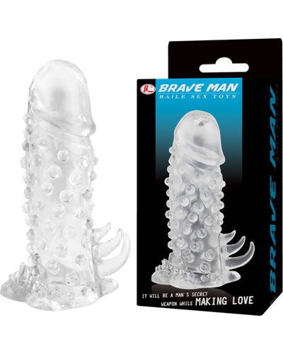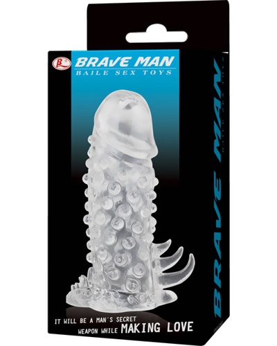 Насадка удлинитель с клиторальным стимулятором BRAVE MAN придаст пикантное звучание вагинальному сексу во время интимной встречи любовников. Массивный фаллопротез из термоэластопласта покрыт мельчайшими пупырышками, дарующими нежную стимуляцию влагалища. Тугие объятия мастурбатора способствуют увеличению члена, а соответственно и эрекции. Продление полового акта с пикантным фаллопротезом становится увлекательным действием. Шероховатая поверхность сексуальной игрушки отвечает за реалистичное звучание вагинального секса, в то время как кокетливые отростки в основании насадки создают все условия для трепетной стимуляции клитора.