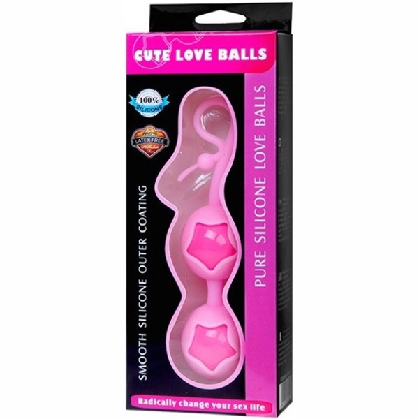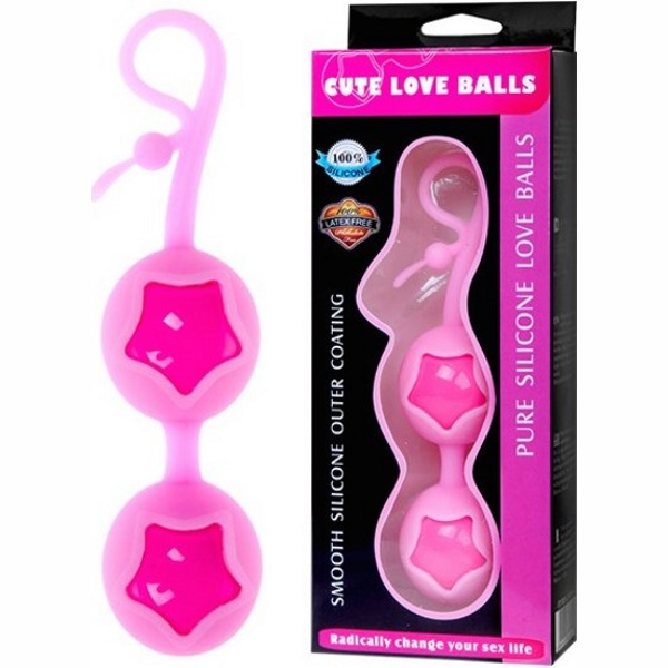 Вагинальные шарики Cute Love Balls оснащены функцией смещенного центра тяжести. В силиконовую вставку помещаются два пластиковых шарика, которые с легкостью вытягиваются чтоб очистить игрушку.
