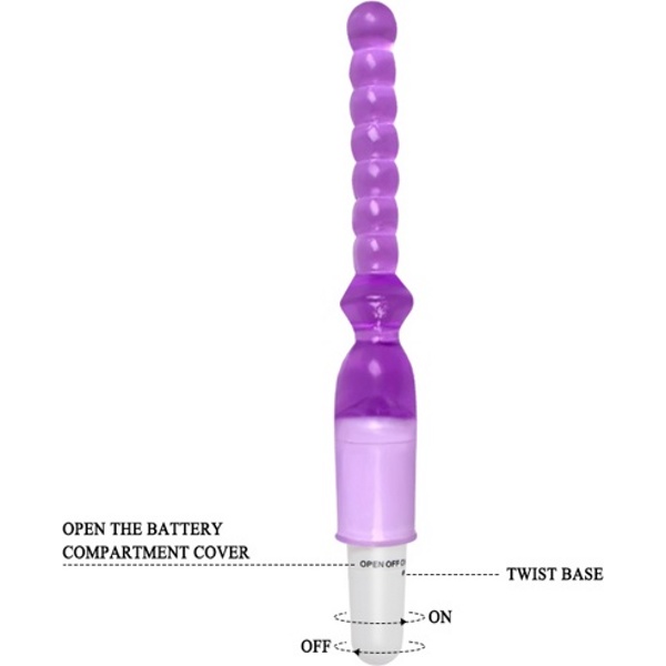 Максимальный диаметр игрушки составляет 2 см, при этом все шарики разного диаметра подарят Вам максимум удовольствия во время стимуляции анальных точек. Стимулятор имеет удобную ручку, на которой расположена кнопка управления скоростью вибрации.