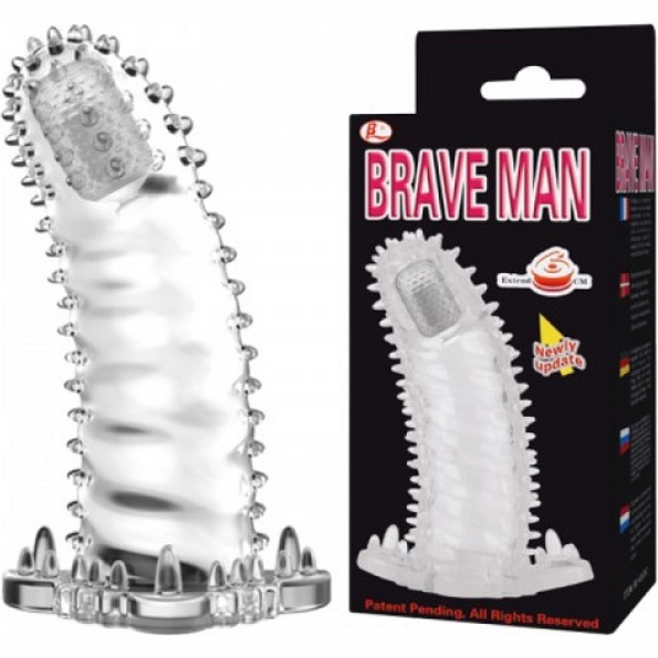 Brave Man - Эластичная насадка с вибрацией и дополнительным стимулятором клиторальной зоны и ануса. Поверхность насадки покрыта маленькими мягкими шипами для дополнительной стимуляции влагалища. Насадка увеличивает половой орган в длину и в объеме. Способствует продлению полового акта.