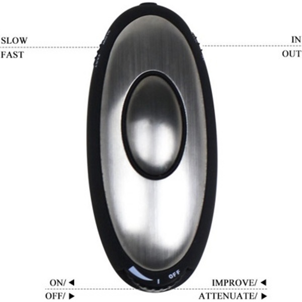 Переключение между SLOW или FAST для контроля частоты ударов. Реле контролирует силу удара. Металлический пульт управления может быть использован отдельно от подушечек. Для массажа рук, переключитесь с "OUT" на "IN" режим. Овальная часть центра обеспечивает ударный импульс при касании.