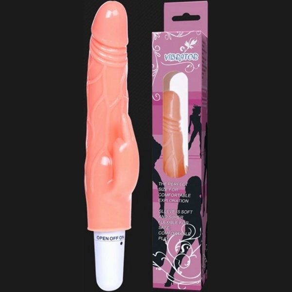 Вагинальная часть стимулятора выполнена в форме мужского члена, имеет очерченную слегка загнутую головку и прорисованные венки, предназначенные для дополнительной стимуляции стенок влагалища и точки G.