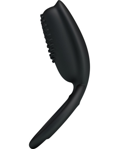 Esther - Черное виброкольцо на пенис с щеточкой для клиторальной стимуляции.