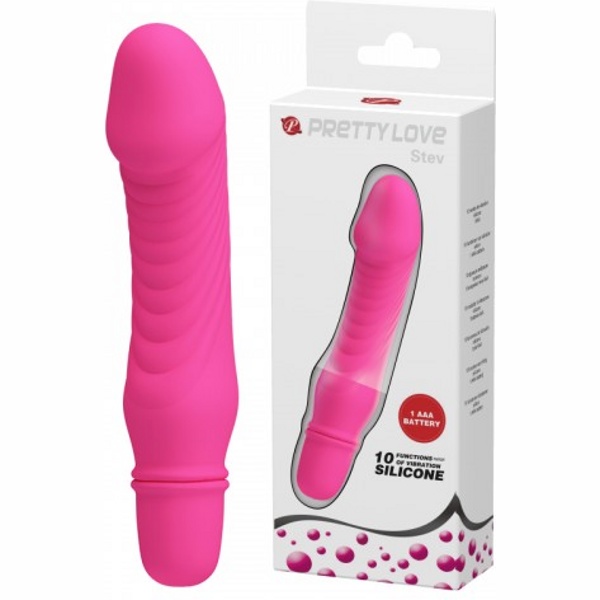 Pretty Love Stev - Водонепроницаемый вибромассажер в реалистичной форме, с красивой головкой и множеством ребристых засечек на стволе