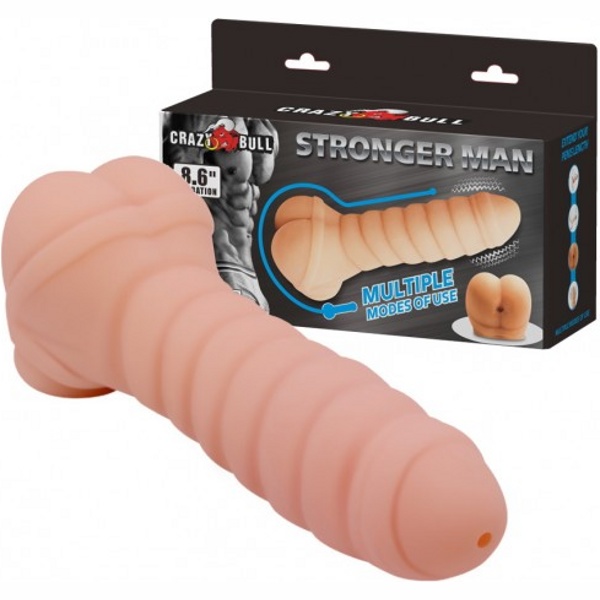 Crazy Bull Stronger Man - это необыкновенная секс-игрушка, которая совмещает в себе мастурбатор для чувственной и реалистичной стимуляции пениса, а также удлиняющую рельефную насадку на член для более ярких ощущений Вашей партнерше.