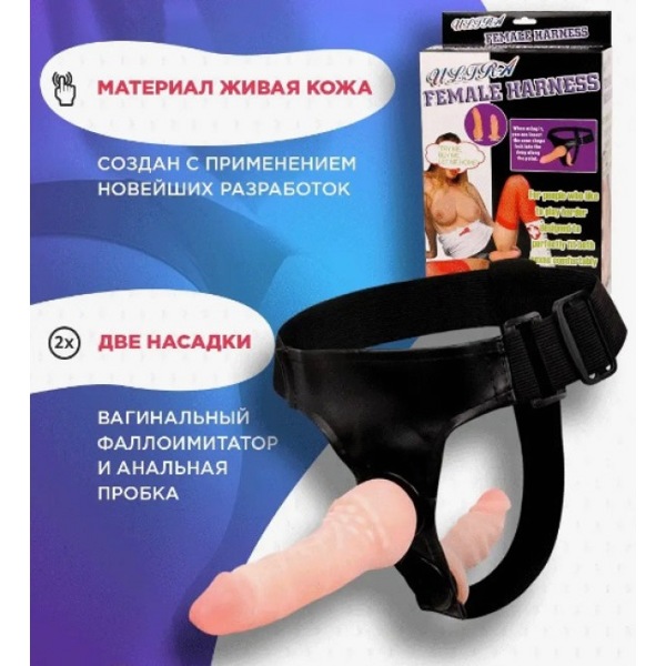 Великолепный страпон Ultra Female Harness разнообразит Ваши игры с партнером, внеся яркие нотки в Вашу сексуальную жизнь. Использоваться страпон может не только лесбийскими парами, но и гетеросексуальными, где женщина хочет взять верх над мужчиной. Одевает страпон женщина таким образом, что небольшой фаллос проникает в ее влагалище, а вот "основной" фаллос может использоваться и в качестве вагинального стимулятора, и в качестве анального. Оба фаллоса реалистичного вида, сделаны они из нежного материала, максимально приближенного к коже человека. Этот потрясающий материал быстро принимает температуру тела, поэтому по ощущениям фаллос почти на 100% схож настоящим пенисом. Производители рекомендуют с данным материалом использовать смазки на водной основе.