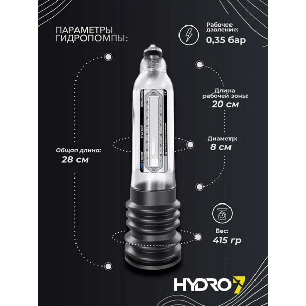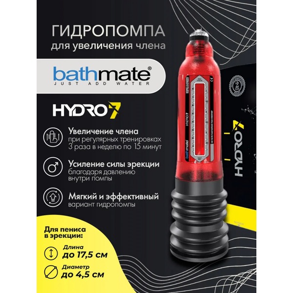 Гидропомпа Bathmate Hydro7 абсолютно безопасна, проста в использовании и эффективна – она удобно крепится на основании пениса, не вызывая дискомфорта, и создает достаточное давление для эффективных тренировок, не требуя постоянной подкачки.