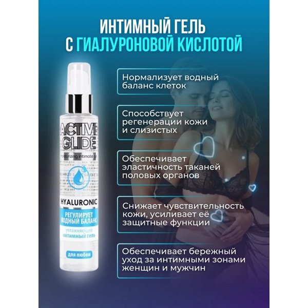 Гель-любрикант Active Glide с гиалуроновой кислотой обеспечивает бережный уход за интимными зонами женщин и мужчин.
