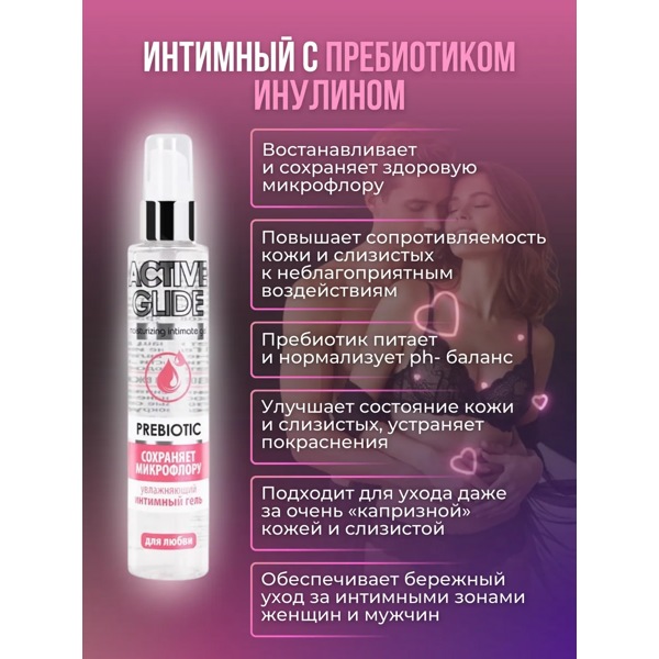 Увлажняющий деликатный интимный гель Active Glide Prebiotic - универсальная смазка, подходящая как для вагинального, так и для анального секса с игрушками и без.