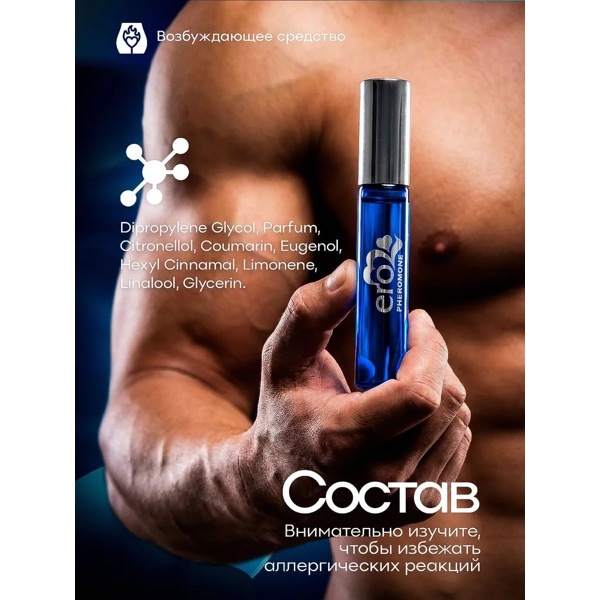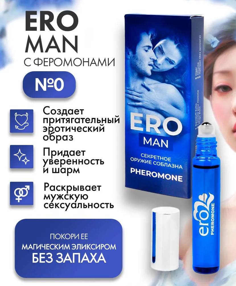 В серии духов «Eroman» для мужчин феромоны замаскированы в ароматах известнейших марок духов. Все композиции на основе оригинального патентованного сырья от ведущих европейских производителей. (7 ароматов, включая нейтральный)