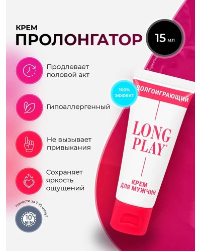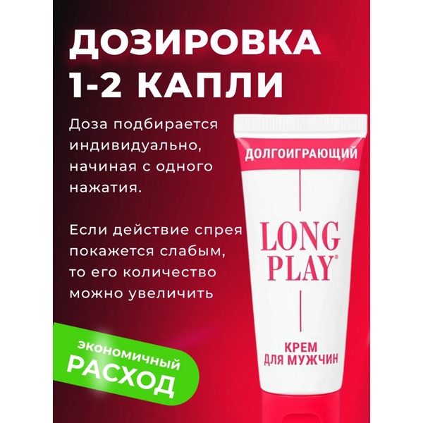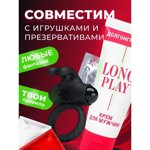 Крем Long Play, производимый на водной основе, оказывает увлажняющее действие на мужские половые органы. Этот эффективный пролонгатор отличается приятным ароматом и не менее приятными тактильными ощущениями. Он быстро впитывается и не раздражает чувствительную и нежную кожу мужских половых органов. Даже минимальное количество этого крема обеспечит значительное продление эрекции и позволит в полной мере насладиться сексуальными играми. Благодаря воздействию крема также увеличится чувствительность вашей партнерши, а ваши взаимные желания достигнут просто невероятной силы.