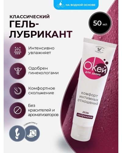 «О'Кей для двоих» - это ваш заветный билет в мир комфортного секса. Классический лубрикант на водной основе интенсивно увлажняет слизистые. Обеспечивает достаточное смазывание и скольжение на протяжении всего полового акта. Одобрен гинекологами. Без красителей и ароматизаторов. Имеет нейтральную формулу, поэтому подходит для большинства людей. Не пачкает белье. Смазка совместима с секс-игрушками и презервативами.
