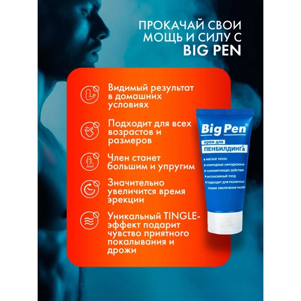Big Pen - Мужской крем для увеличения полового члена и стойкой эрекции. 50 мл.