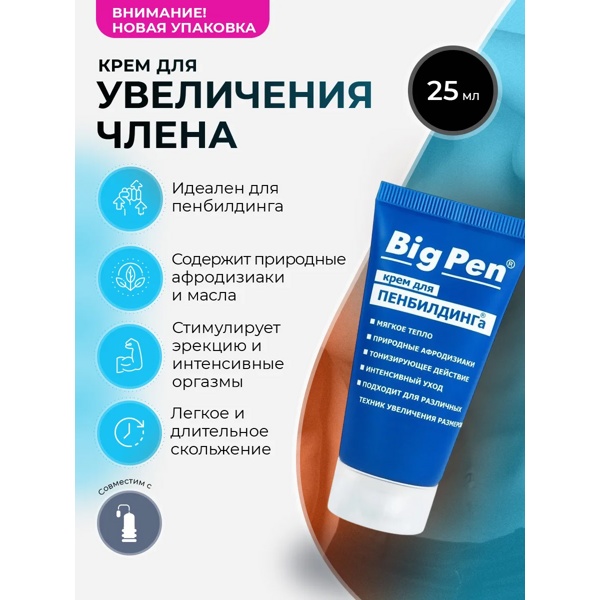 Big Pen - Мужской крем для увеличения полового члена и стойкой эрекции. 20 мл