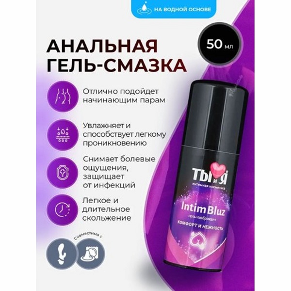 Анальный лубрикант «Intim Bluz» на водной основе обеспечивает устойчивое и длительное скольжение, снимает болевые ощущения, а также рекомендуется для защиты от инфицирования во время полового акта.