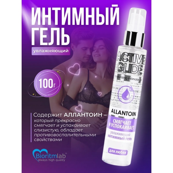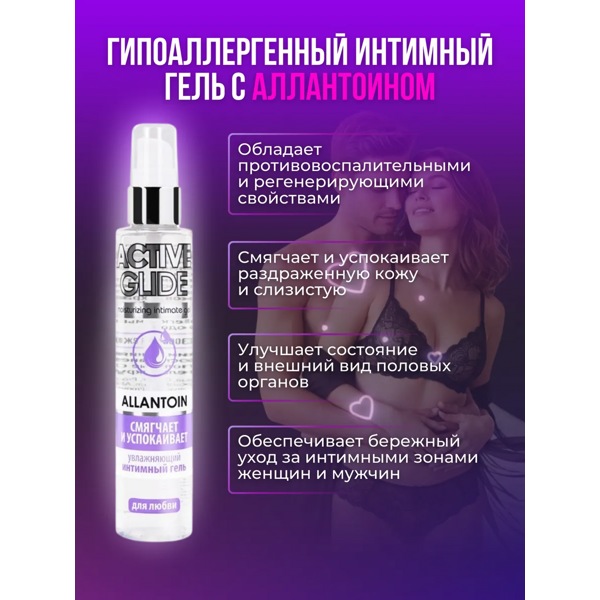 Увлажняющий гипоаллергенный интимный гель Active Glide Allantoin. - универсальная смазка, подходящая как для вагинального, так и для анального секса с игрушками и без.