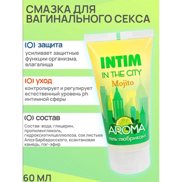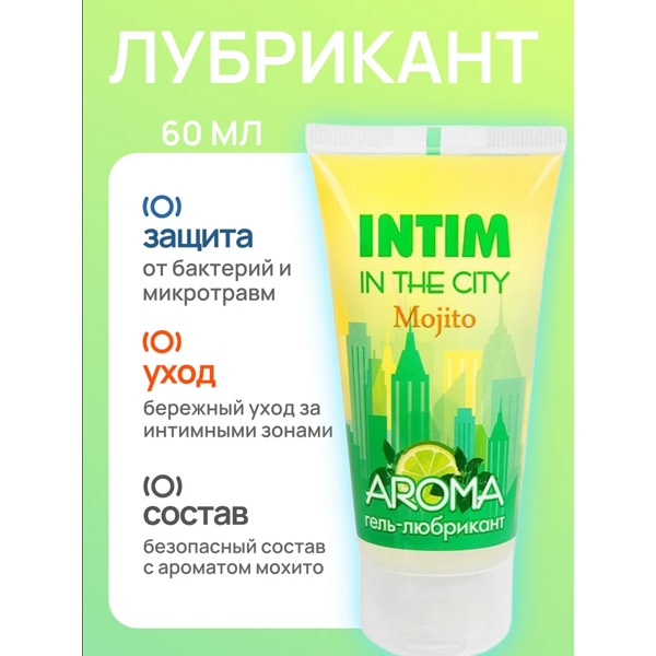 Intim Aroma - Гель-любрикант на водной основе с приятным освежающим ароматом мохито обеспечивает мягкое проникновение и лёгкое скольжение во время интимной близости.