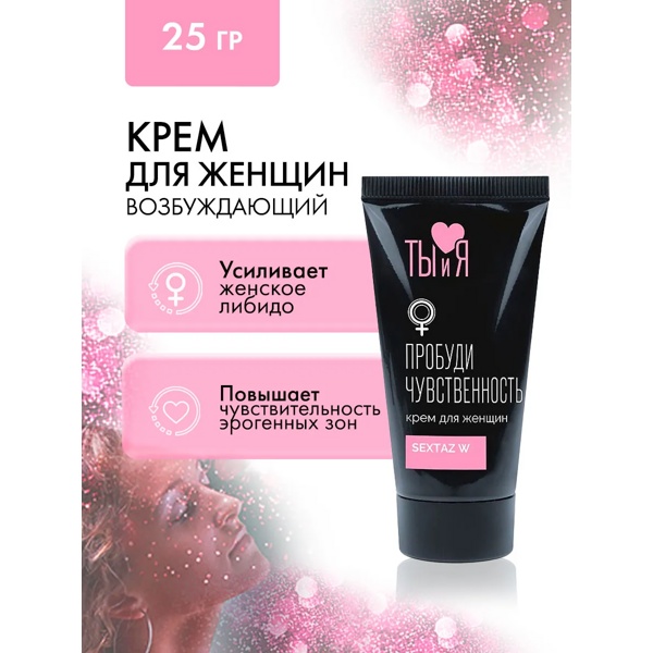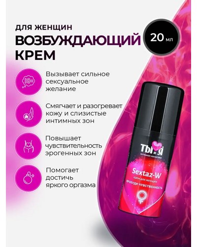 «SexTaz-W» - Нежный крем для повышения чувствительности и усиления желания, способствует более глубокому оргазму. Наносится на эрогенные зоны женщины (соски, половые органы) перед интимной близостью и втирается мягкими массирующими движениями. Смягчает, разогревает, увлажняет кожу и слизистые, ухаживая за ними и продлевая их молодость. Начинать с 1-2 капель, при необходимости увеличивая дозу. Совместим с любыми изделиями из латекса и синтетических материалов.