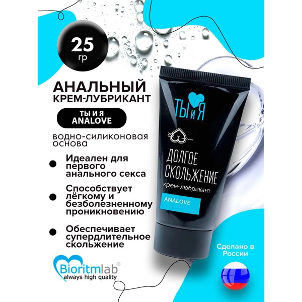 Компания «Биоритм» позаботилась о том, чтобы столь интимный процесс, как анальный секс, проходил безболезненно и максимально приятно, приготовив специальный анальную смазку, которая обладает обезболивающим эффектом. Это лубрикант люкс-класса из серии «Я и ты». Смазка представляет собой прозрачный гель в стильном черном флаконе. Благодаря этому лубриканту Вы забудете о болевых ощущениях во время анального секса и узнаете, что такое настоящее длительное скольжение и безмерное удовольствие. Гель сделан на силиконовой основе, поэтому не подходит для интимных игрушек из силикона.