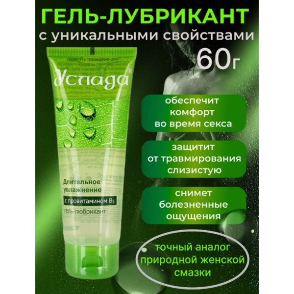«Услада» - безжировая водная смазка без цвета, запаха и с нейтральным вкусом. 60 г