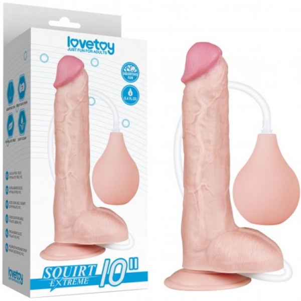 Реалистичный фаллос с имитацией семяизвержения 10'' Squirt Extreme Dildo станет необычайно любимой игрушкой даже для самого изощренного коллекционера!