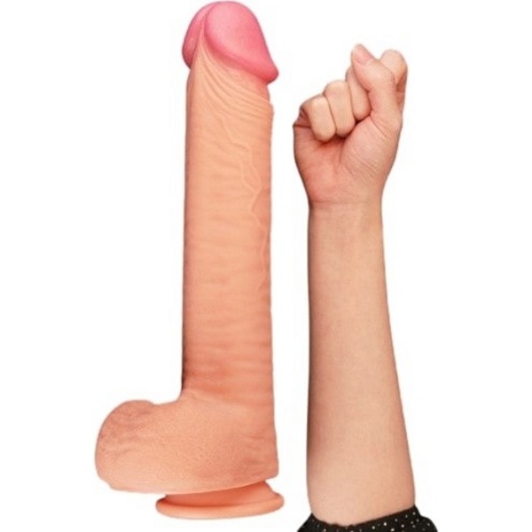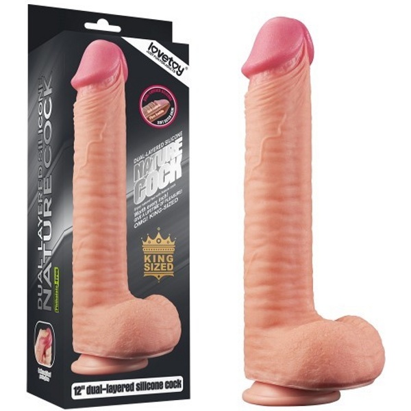 12" Dual Layer Liquid Silicone Cock - Фаллос-реалистик на присоске с мошонкой в размере King Size!