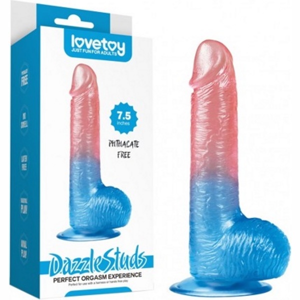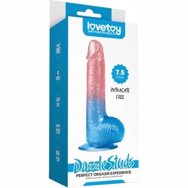 7.5'' Dazzle Studs - Реалистичный фаллоимитатор с мошонкой и цветным градиентом. 19 см
