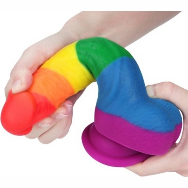 Необыкновенная, яркая, радужная расцветка радует глаз владельца этого фаллоимитатора!