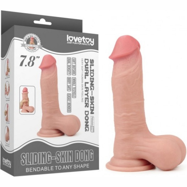 7.8'' Sliding Skin Dual Layer Dong - Гнущийся фаллоимитатор с эффектом двойной кожи. 20 см