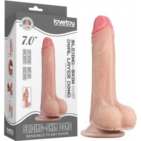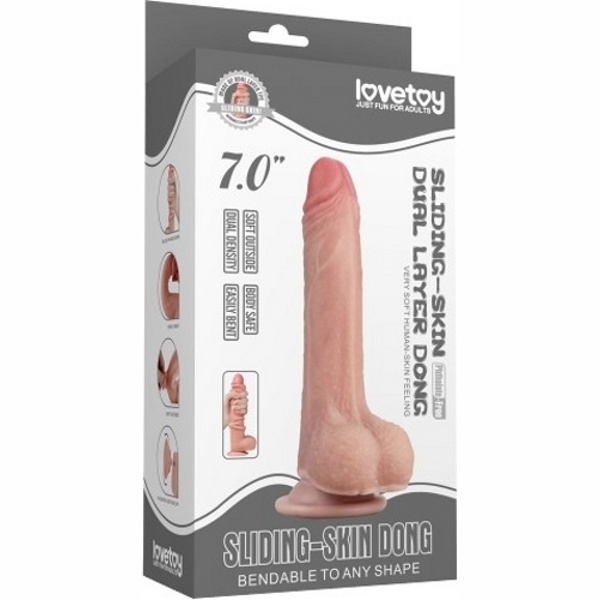 7'' Sliding Skin Dual Layer Dong - Гнущийся фаллоимитатор с эффектом двойной кожи. 18 см