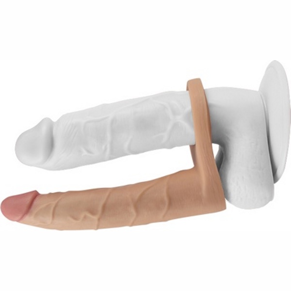 7" The Ultra Soft Double Vibrating - Реалистичная насадка на член для двойного проникновения с вибрацией