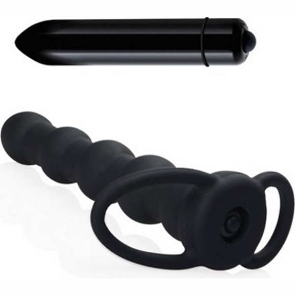 Vibrating Rock Balled Double Probe - анальная черная насадка на пенис, создана для двойного проникновения.