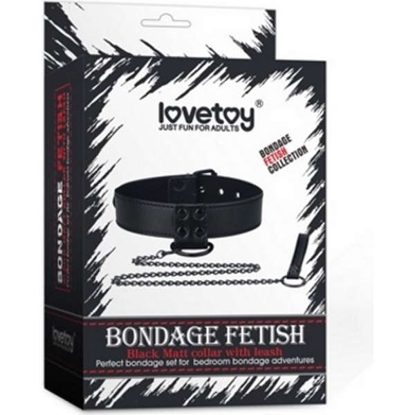 Bondage Fetish Black Matt Collar With Leash - Черный матовый ошейник с поводком