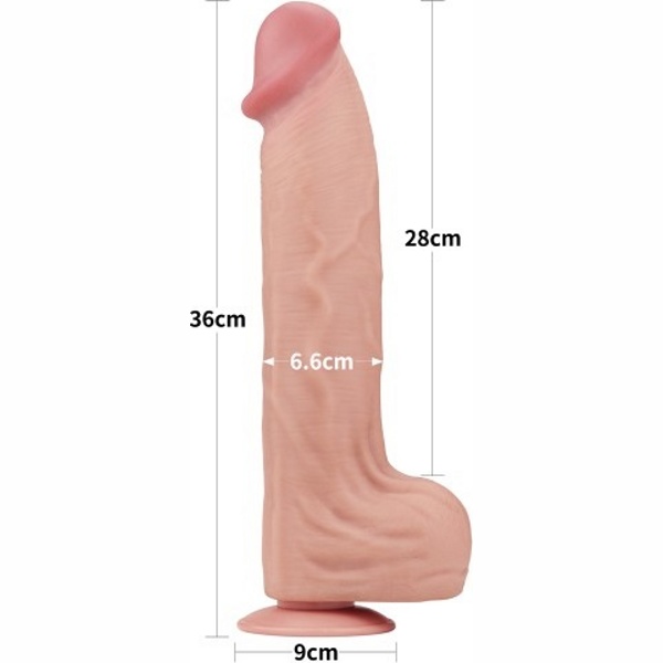 14'' King Sized Sliding Skin Dual Layer Dong - Реалистичный фаллоимитатор с эффектом двойной кожи. длина 36 см, диаметр 6,6 см