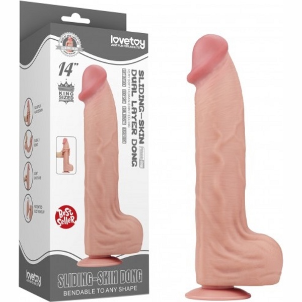 14'' King Sized Sliding Skin Dual Layer Dong - Реалистичный фаллоимитатор, который удивит Вас своей реалистичностью и упругостью!