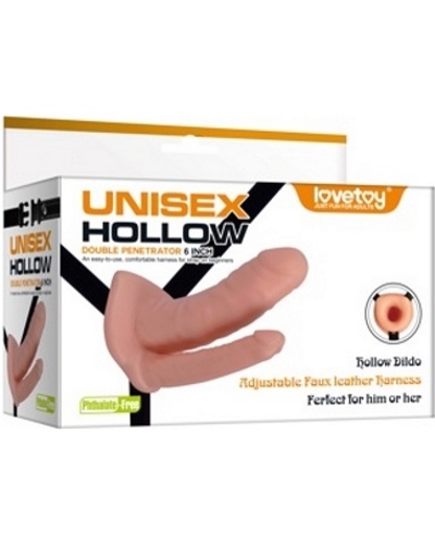 Unisex Hollow Strap On - Полый фаллоимитатор для двойного проникновения имеет приятную текстуру, которая возбуждающе упруга. Он достаточно прочен и имеет мягкое основание для комфортного использования женщиной, а также идеально подходит для мужчины.