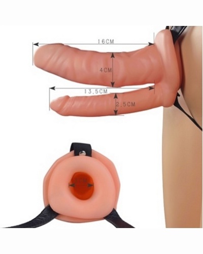 Полый страпон имеет отросток для двойной, анальной и вагинальной стимуляции, такая секс игрушка обеспечивает пикантность полового акта и множество ярких ощущений. Анальный стимулятор имеет коническую форму, что позволяет осуществить легкое деликатное проникновение, но при этом он достаточно упругий, что бы одарить насыщенным массажем.
