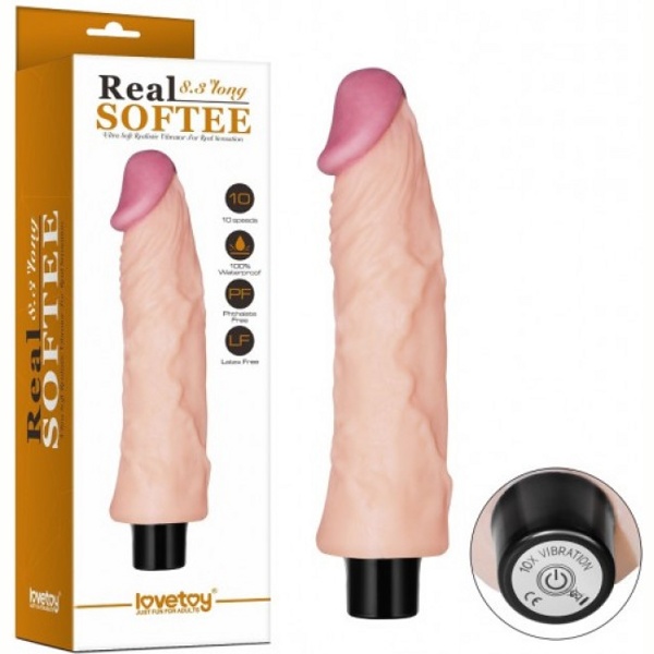 REAL SOFTEE Vibrating Dildo 8" - Реалистичный фаллос-вибратор с 10 режимами вибрации.